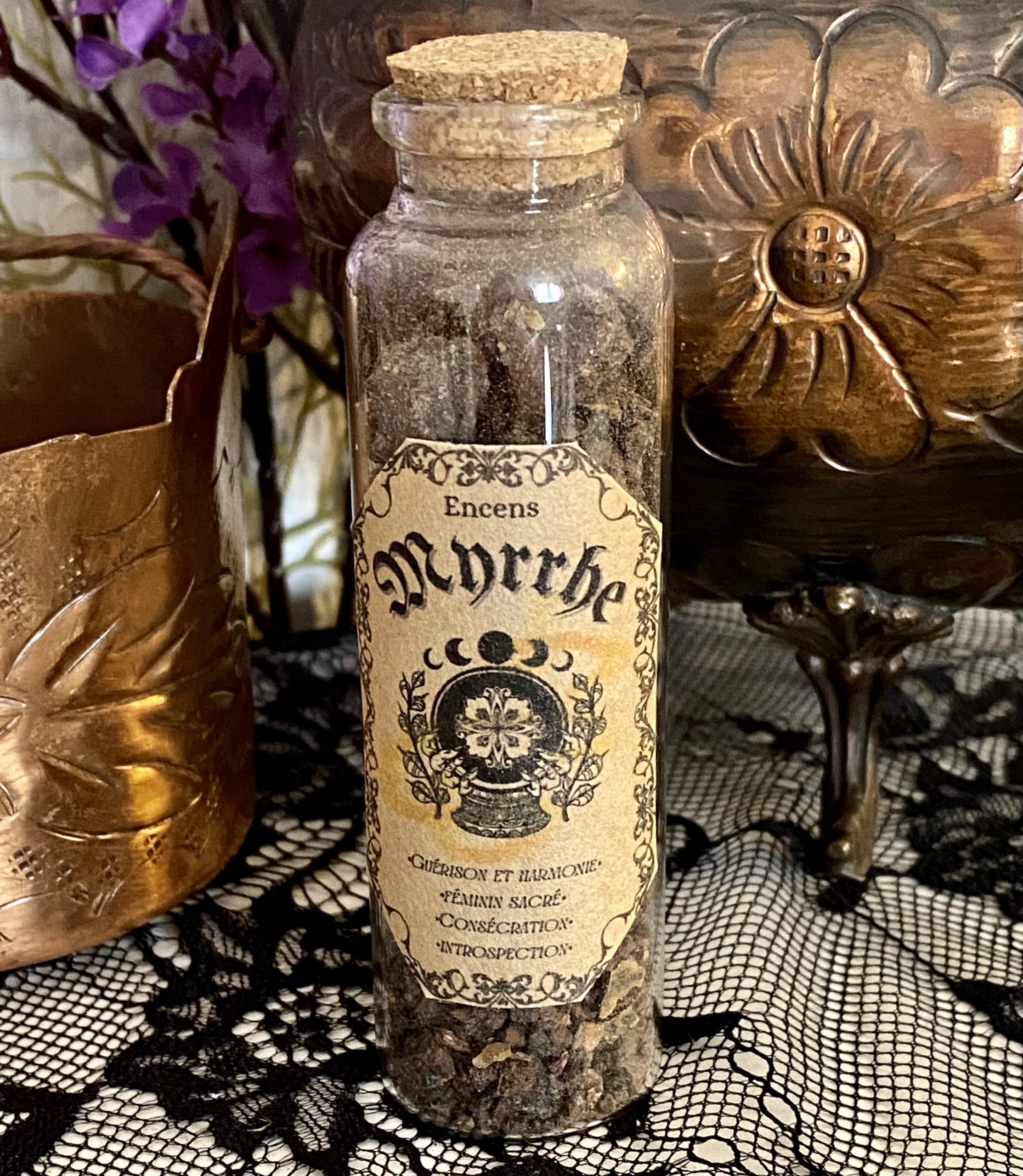 Chaque encens a ses vertus et correspondances magiques, voici celles de la MYRRHE :