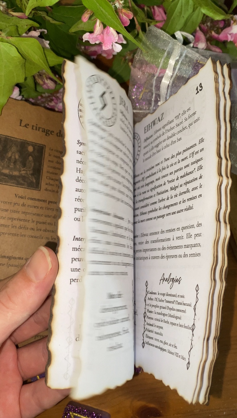 C’est toujours avec impatience que j’attends mes colis, j’ai pris les runes violettes, elles sont magnifiques, j’adore et ce petit livret brûlé avec joie du travail accompli car oui je suis plus que sûre que tu es épanouie dans tes confections et tu peux être fière car tout est splendide et fait avec soin.
